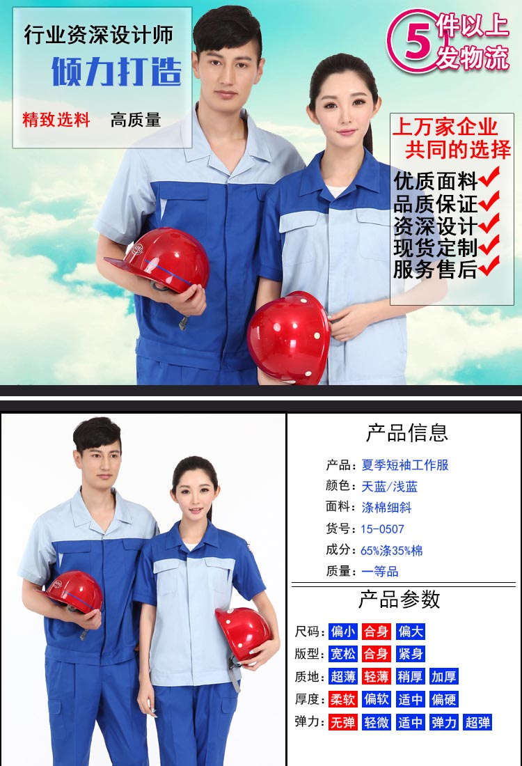 15-0507A天藍色(定制款)慕欣格服裝公司,專業(yè)定制工作服,擁有現(xiàn)貨,工作服品質(zhì)好,先進的生產(chǎn)線,嚴格檢驗產(chǎn)品質(zhì)量,讓用戶穿著舒適安心放心。堅持做一個有良心的服裝企業(yè)。