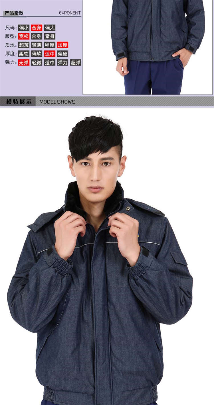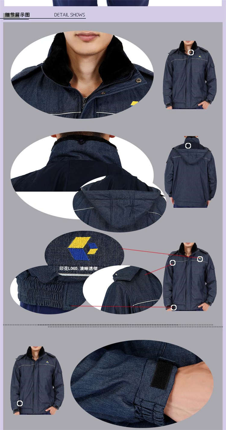 冬季防寒服生產(chǎn)廠家防靜電牛仔棉服羽絨工作服