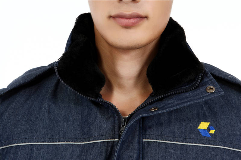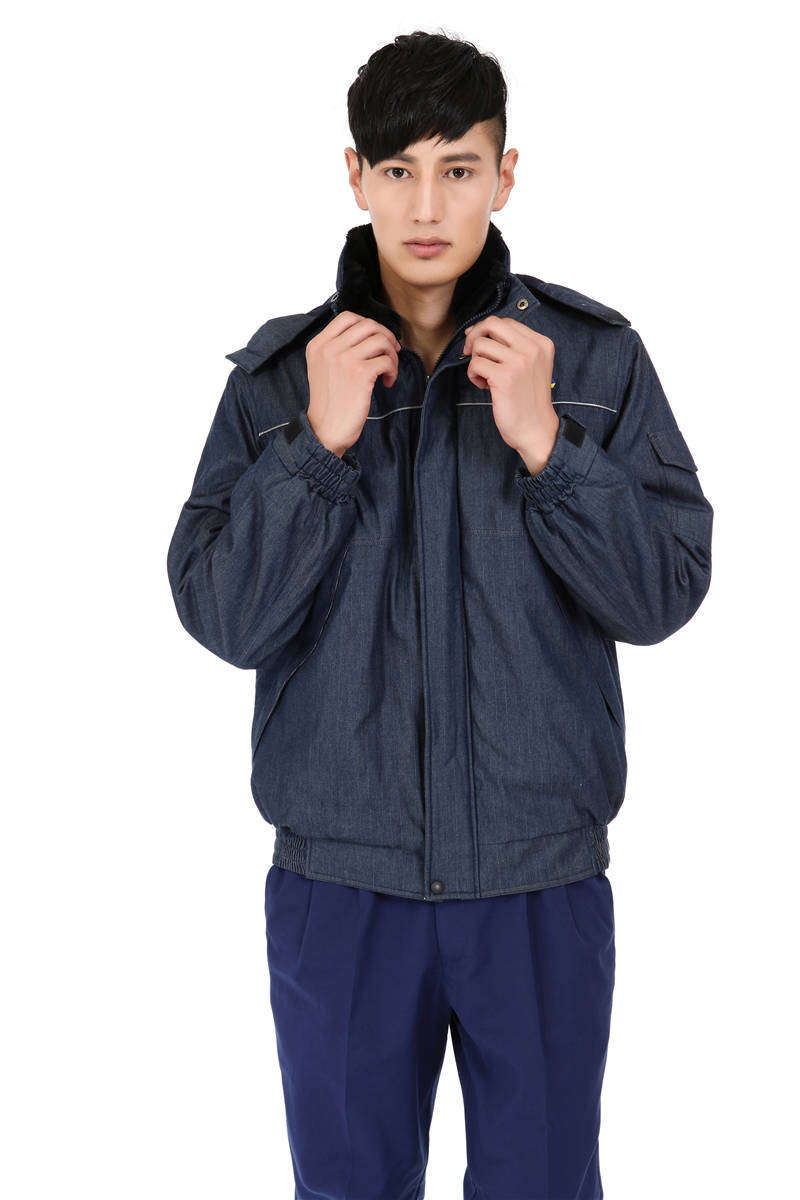 電企定做的牛仔防靜電棉服北京防寒服定制公司